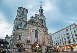 La basilique-cathédrale Notre-Dame-de-Québec, située sur le site de la première église paroissiale de Québec, a été plusieurs fois modifiée, agrandie et reconstruite. L’édifice que nous voyons aujourd’hui date de 1925 car il a brûlé complètement (il ne restait que les murs) à cette époque. Le mot Notre-Dame réfère à la vierge Marie. Plusieurs églises au Québec portent ce nom. D’ailleurs, si vous regardez au-dessus de l’entrée principale, vous pouvez voir les lettres AM qui signifient Ave Maria. L’intérieur de la basilique est d’une grande beauté. On peut voir un baldaquin d’une beauté exceptionnelle, œuvre de François Baillargé datant de la fin du 18e siècle, qui a été reconstitué suite à l’incendie de 1922. On retrouve également la chapelle funéraire de Monseigneur de Laval depuis 1993; on peut y voir un gisant de bronze de l’évêque. Au sous-sol, c’est la crypte funéraire qui contient les restes de plusieurs autres évêques dont Monseigneur de Saint-Vallier, deuxième évêque de Québec. On retrouve également les restes du cardinal Taschereau, du gouverneur Frontenac et de plusieurs autres personnages importants de notre histoire.